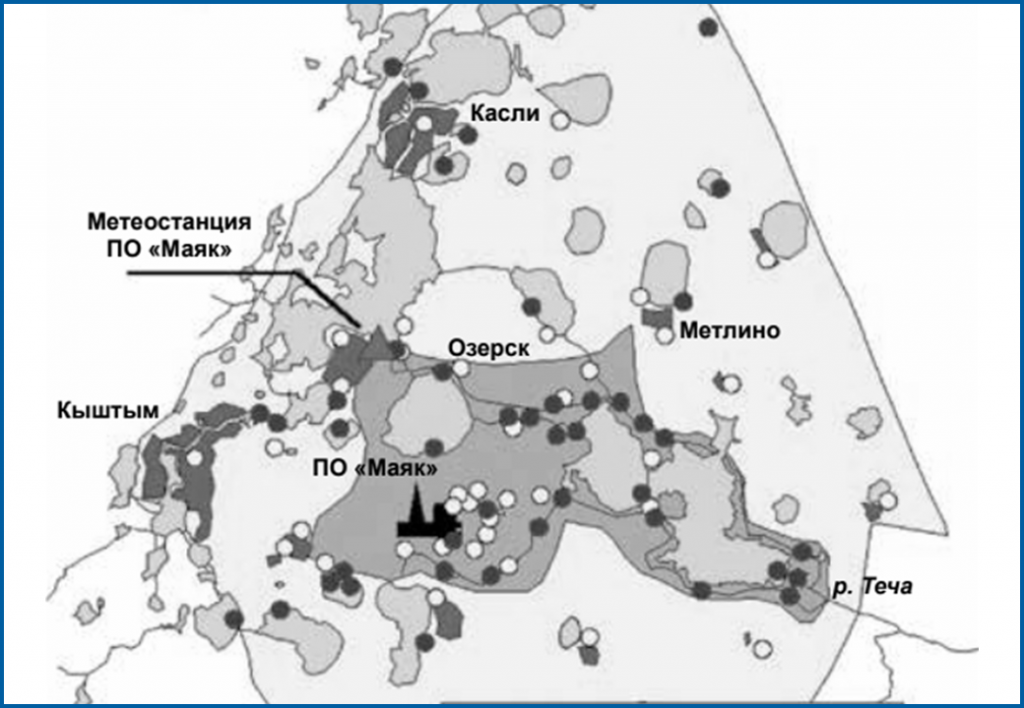 Радиационная обстановка в районе ПО «Маяк» сформировалась в основном в результате прошлой деятельности предприятия. В начальный период работы (с 1949 г.) использовались неотработанные технологий производства оружейного плутония и, в меньшей степени, реакторного производства, происходили серьезные аварии. В результате произошло загрязнение окружающей среды долгоживущими радионуклидами.