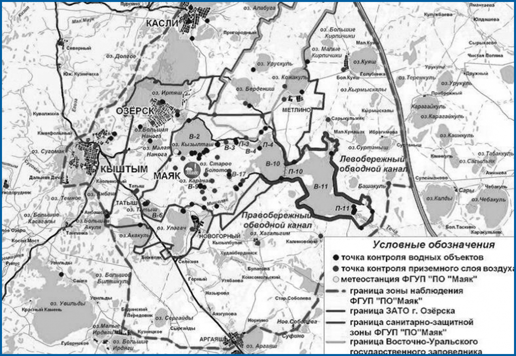 Радиационный мониторинг в зоне влияния комбината проводит Лаборатория экологической безопасности и охраны окружающей среды ПО «Маяк» и Уральское Управление гидрометеослужбы.